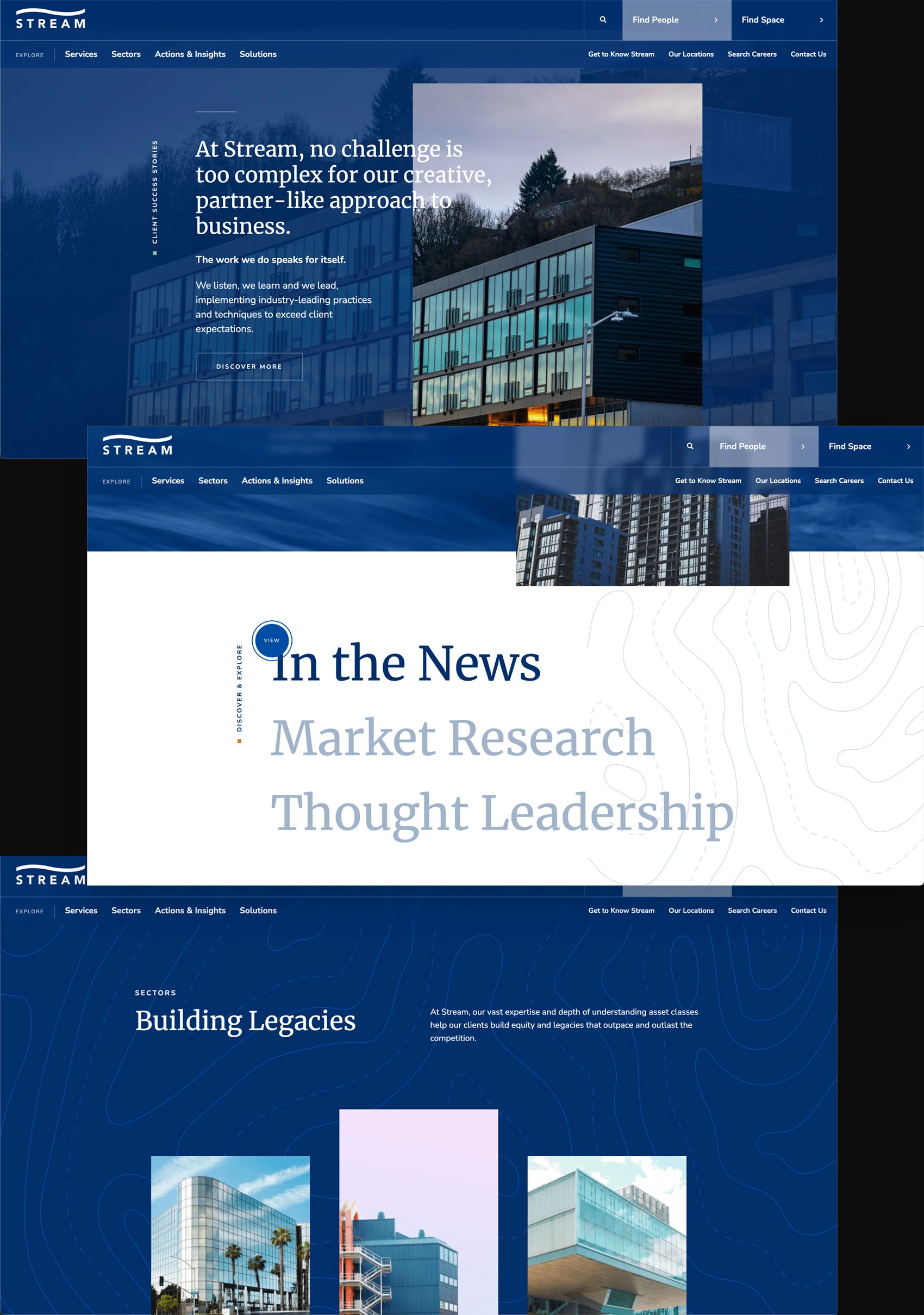 Stream is an end-to-end, full-service commercial real estate services provider working for owners, investors, and tenants. Covering some of the most active real estate markets coast to coast, they have grown from two co-founders in Dallas, Texas, to over 1,200 talented individuals across the nation. Stream came to DIGITECH looking for a totally new website design using new branding elements and content.
